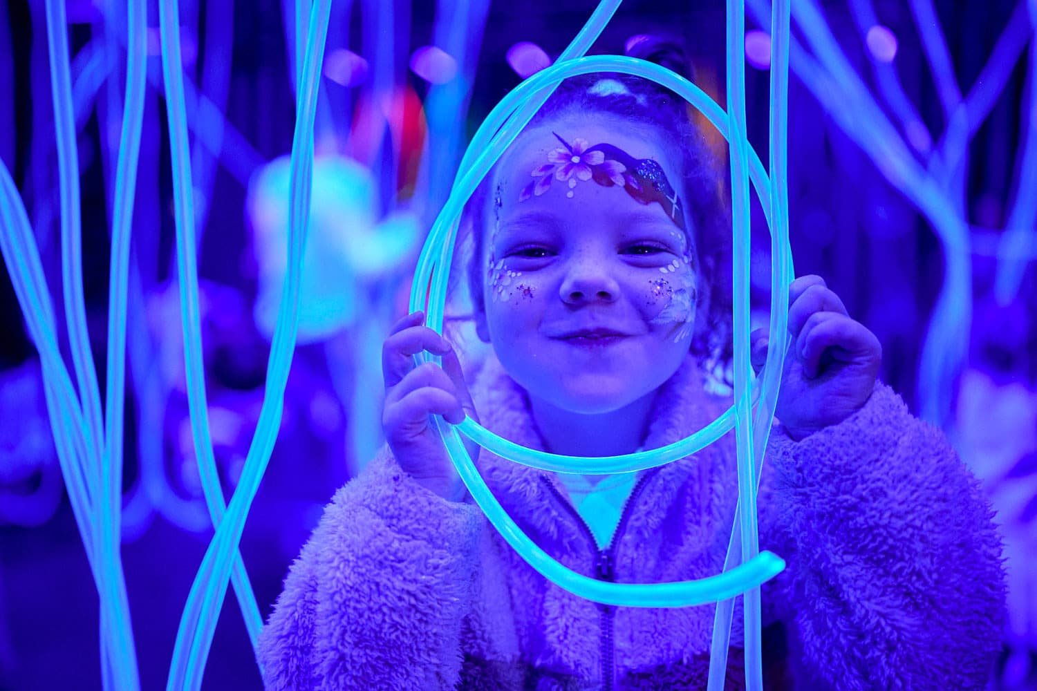 Create your own world amongst a rainbow of interactive neo glowing sculptures that morph as you play.