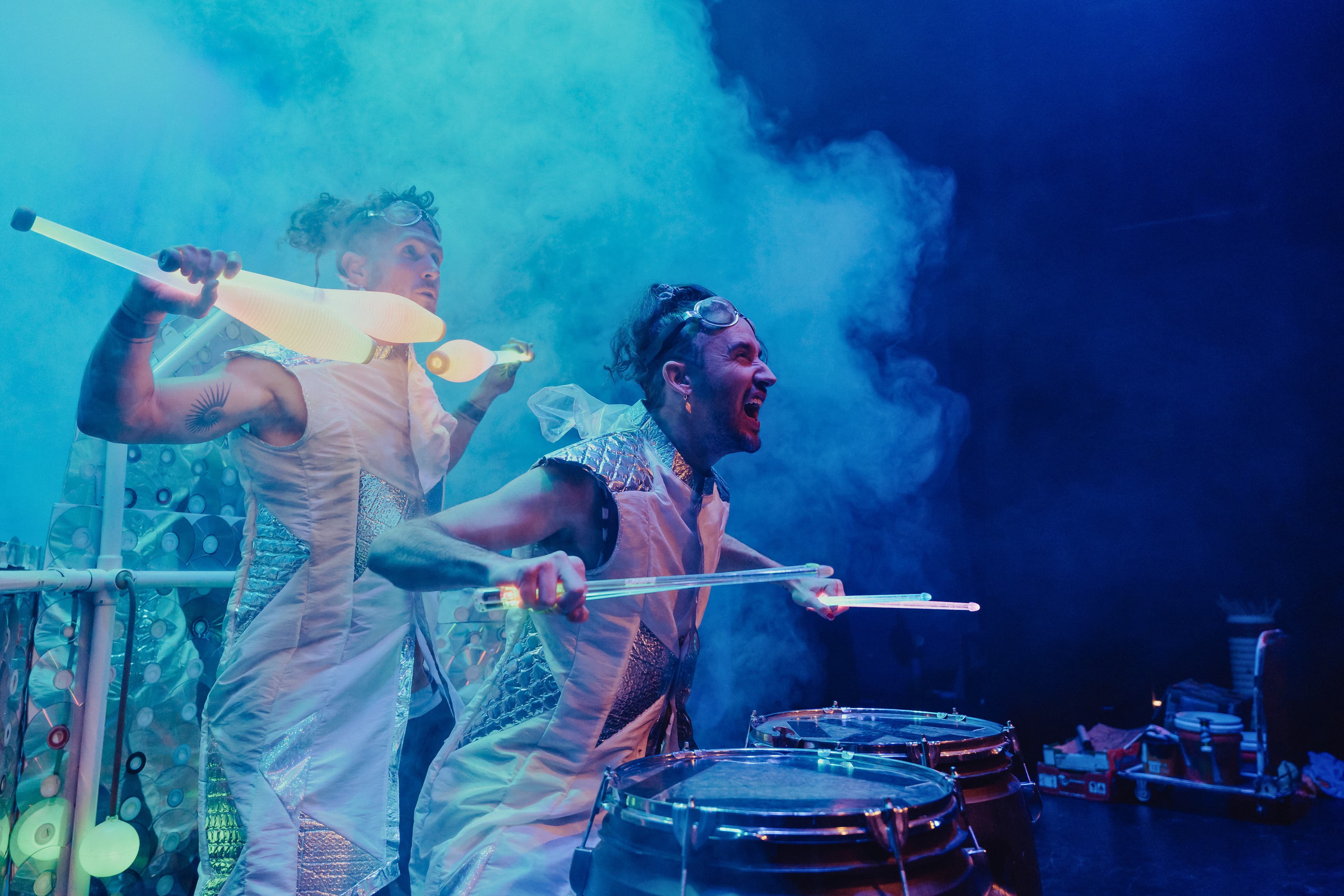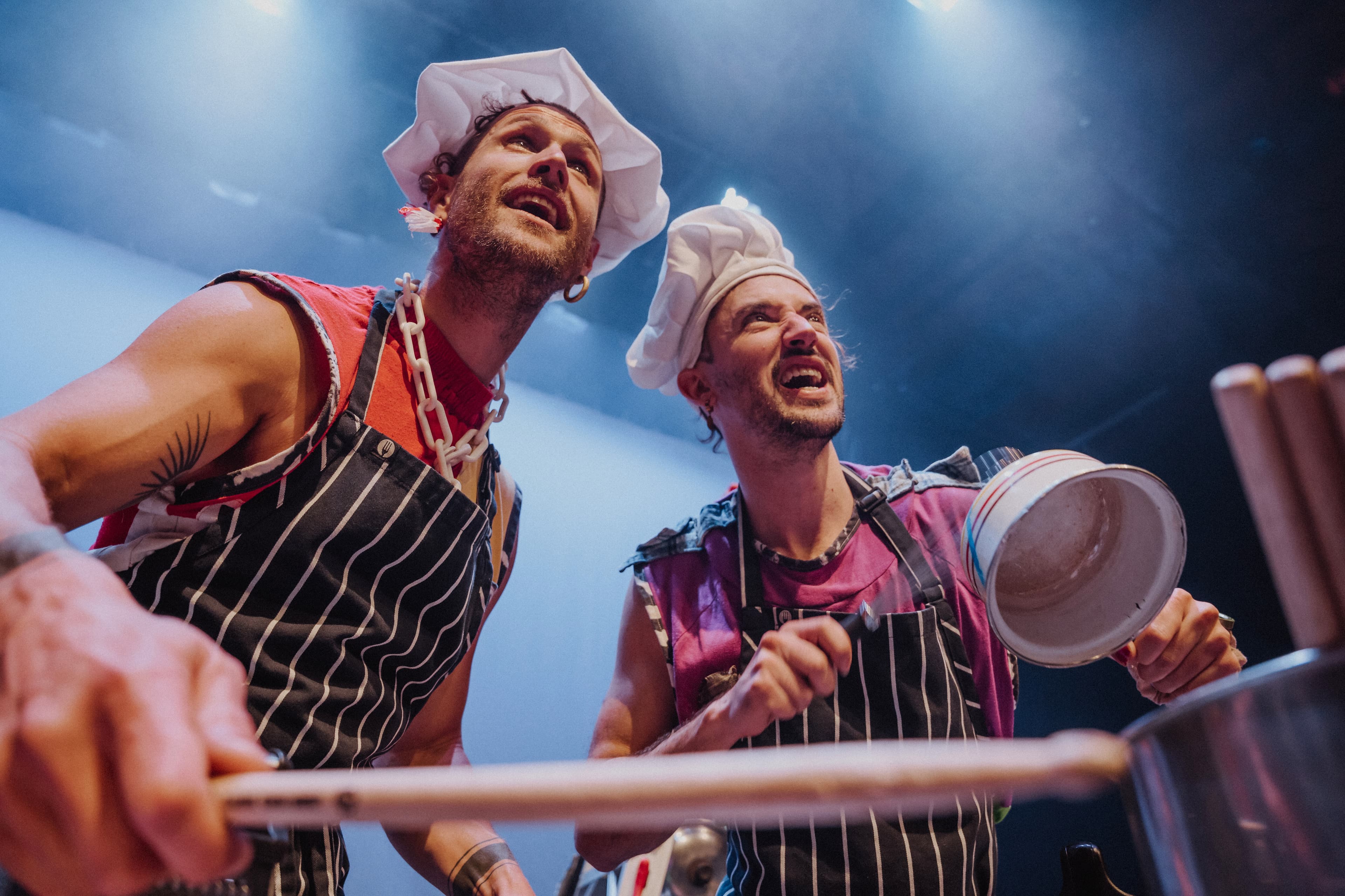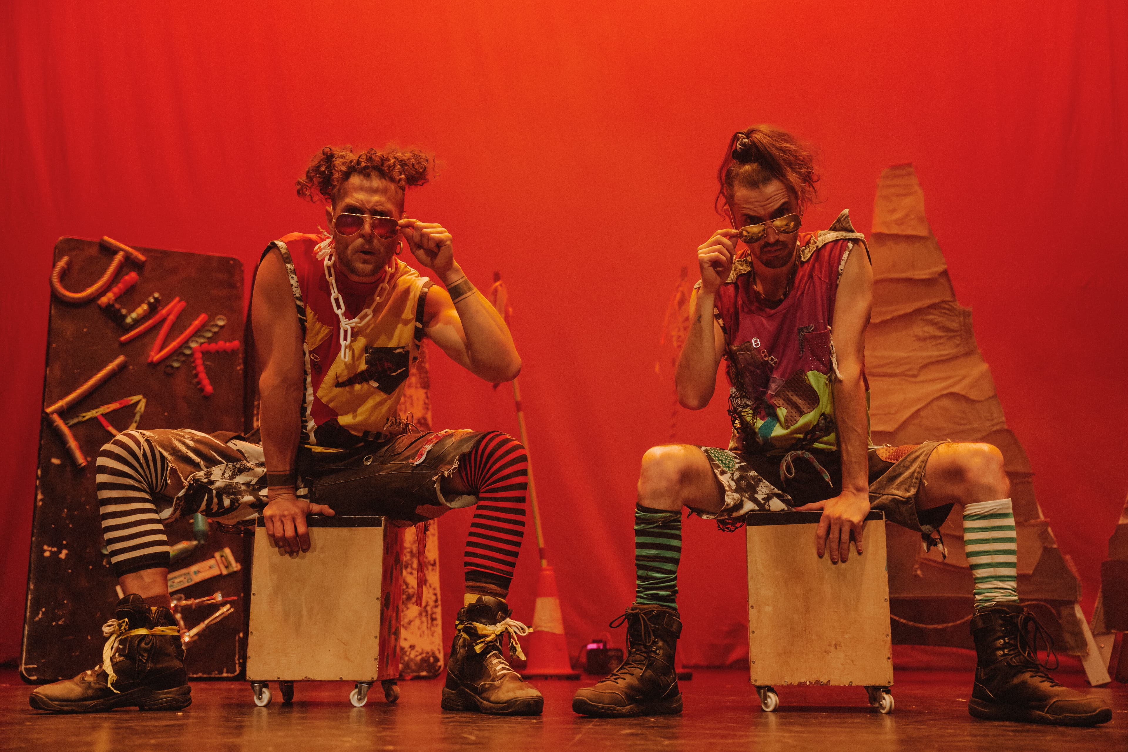 Junklandia excites the imagination of children and adults alike. Kitchen utensils, cardboard boxes and buckets become the greatest drum set in the world; plastic bags are an amazing musical instrument and the human body becomes a unique sound machine. With a language of gibberish and rhythm, this show is accessible to any age and nationality.